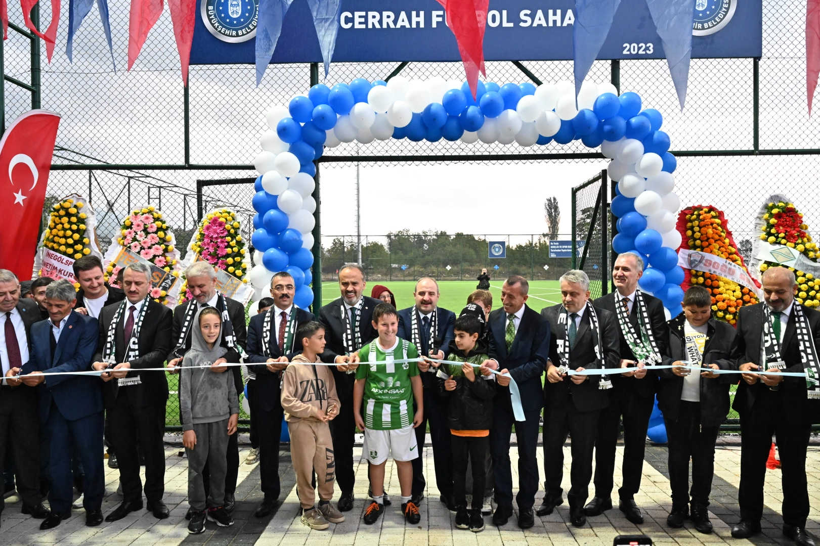 Gençlere sporu sevdirmek, daha sağlıklı ortamlarda spor yapmalarına imkan sağlamak amacıyla İnegöl’ün Cerrah Mahallesi’ne resmi maçların da oynanabileceği sentetik çim halı saha, 4 adet soyunma odası, 125 kişilik seyirci tribünü ve çevre düzenlemeleriyle modern bir tesis kazandırıldı. Cerrah Spor Kulübü başta olmak üzere bölge gençlerine hizmet verecek tesis, Büyükşehir Belediye Başkanı Alinur Aktaş’ın yanı sıra Bursa Milletvekilleri Mustafa Varank ve Ayhan Salman, İnegöl Belediye Başkanı Alper Taban, İnegöl Kaymakamı Eren Arslan, Cerrah Spor Kulübü Başkanı Recep Okumuş, bölge sakinleri ve sporcu gençlerin katıldığı törenle hizmete açıldı.