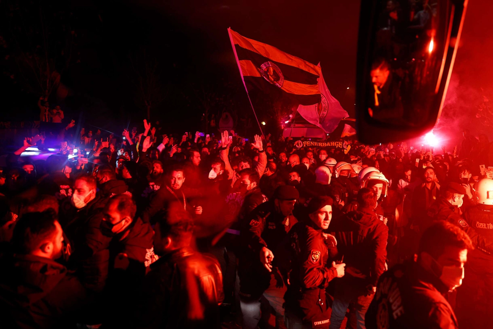 Taraftarların yoğunluğu ve sevgi gösterileri nedeniyle Fenerbahçeli sporcuları taşıyan takım otobüsü, Can Bartu Tesisleri'ne girmekte zorlanırken; ellerinde meşalelerle takım ve oyuncular lehine tezahüratlar yapan taraftarlar uzun süre tesislerin önünde ayrılmadı.