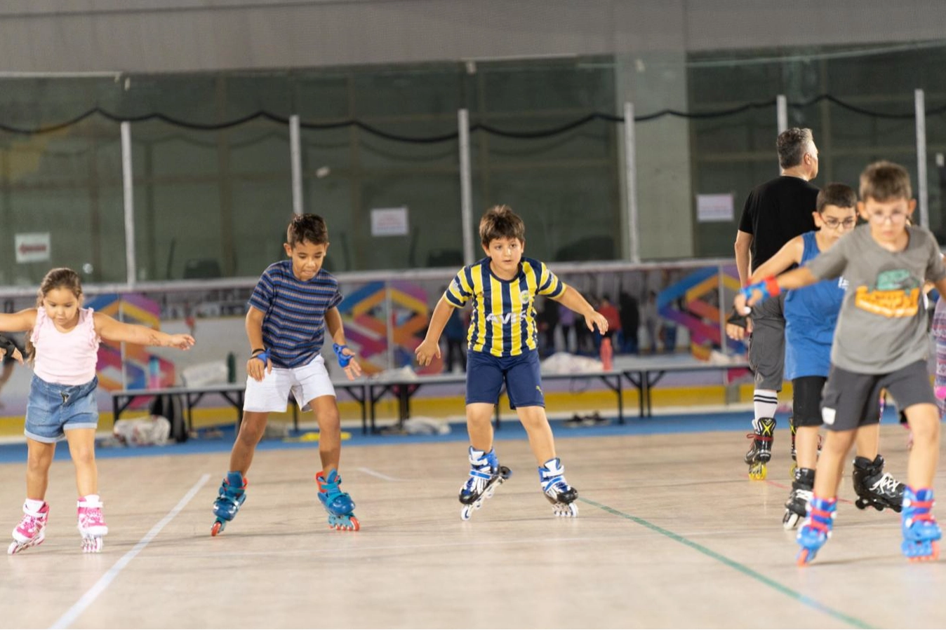 İzmirli çocuklara tekerlekli paten eğitimi veren Buz Hokeyi Başantrenörü Mehmet Balkaya, “Normalde yazları buz pistini kapatıyorduk, bu sene parke bir zemin yapıldı. Onun üzerinde tekerlekli paten eğitimi veriyoruz. 5 yaş ve üzeri herkes kurslarımıza katılabiliyor. Kurs ücretimiz bin lira, ayda sekiz dersimiz var” dedi.