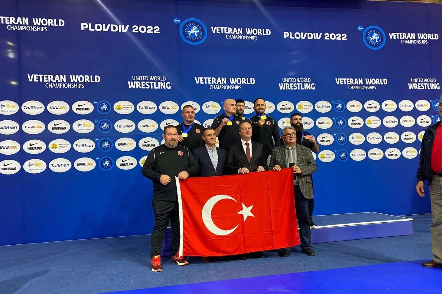 KOCAELİ (İGFA) - Bulgaristan’ın Plovdiv kentinde yapılan 2022 Dünya Veteran Güreş Şampiyonasında mindere çıkan Büyükşehir Belediye Kağıtspor’lu güreşçilerden Abdülhamit Altun altın madalya kazanarak Dünya Şampiyonu oldu. Milli takım adına mücadele eden Kocaeli'nin pehlivanlarından Faruk Akkoyun ve Ali İmamoğlu bronz madalya kazanırken Mustafa Bayram gümüş madalya ile kürsüde yer aldı.