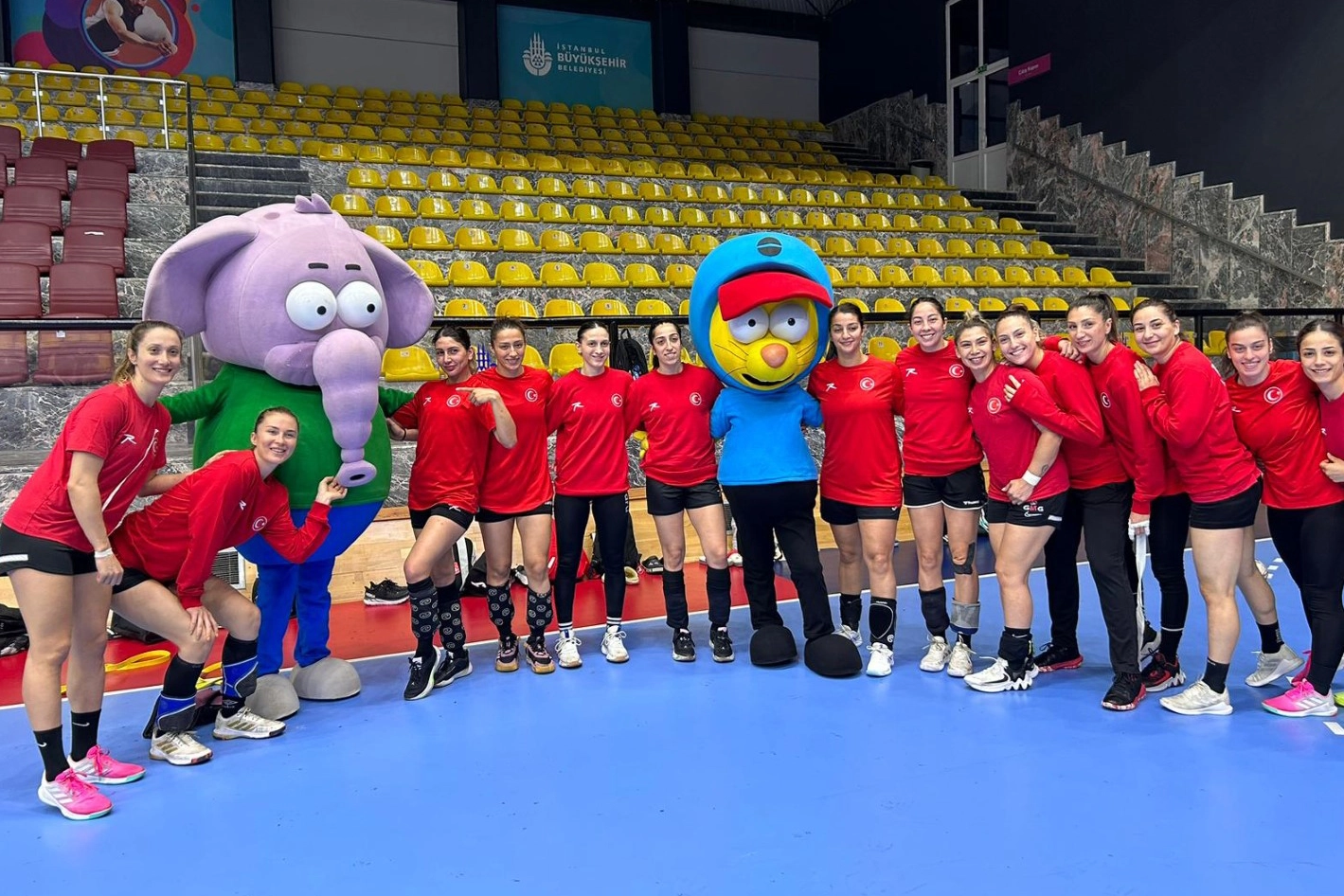 Konuşmaların ardından Uğur Kılıç, Varol Yaşaroğlu ve konuklar, A Milli Kadın Hentbol Takımı kalecilerinin koruduğu kaleye '7 metre' atışı yaptı.