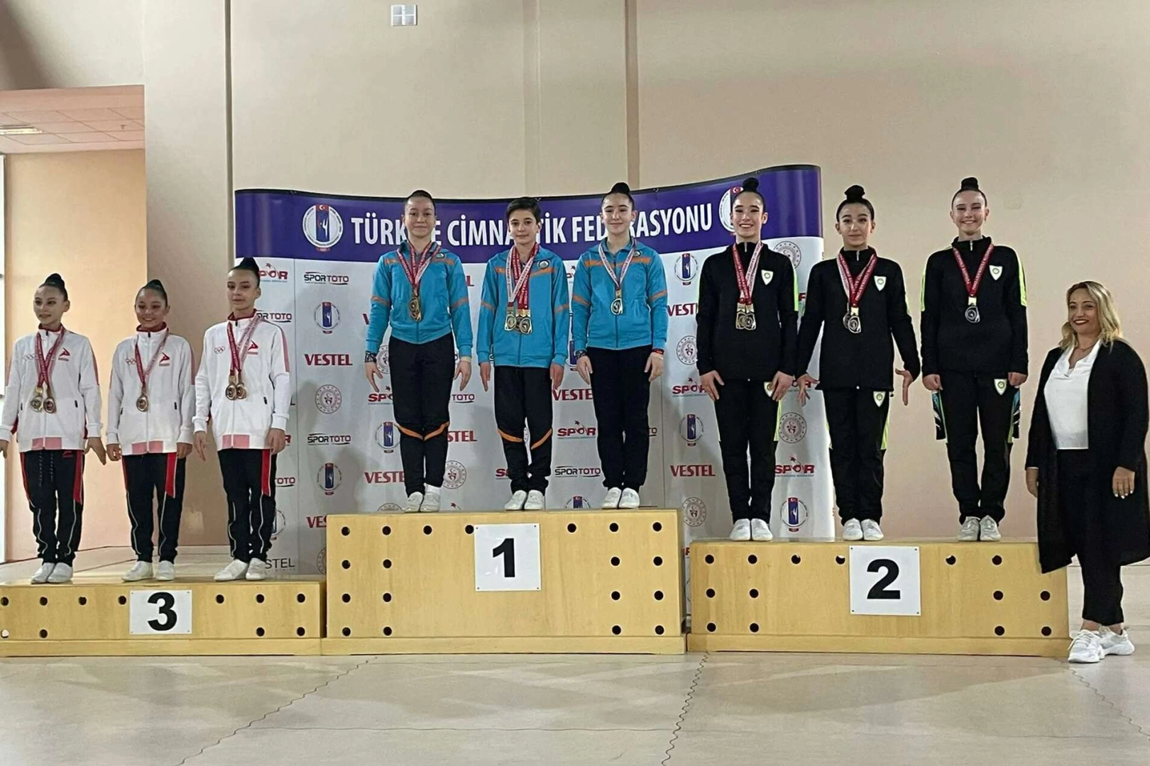 MANİSA İGFA- Türkiye Cimnastik Federasyonunun faaliyet programında yer alan Aerobik Cimnastik Türkiye Şampiyonası 22-24 Nisan 2022 tarihleri arasında İstanbul’da gerçekleştirildi. Manisa Büyükşehir Belediyespor Cimnastik takımından Selin Özermiş 12-14 yaş tek bayan kategorisinde Türkiye Şampiyonu olurken; Yudum Atan Türkiye ikinciliği elde etti. Selin Özermiş, Yudum Atan ve Sahra Saylan üçlüsü de trio kategorisinde Türkiye ikincisi oldular. Aynı yarışmada 15-17 yaş gençler kategorisinde Manisa Büyükşehir Belediyesporlu Göktürk Balcı, tek erkekler kategorisinde Türkiye Şampiyonu olurken, Okay Arsan Türkiye ikincisi oldu. 15-17 yaş tek bayanlar kategorisinde ise Şimal Seyman, Türkiye Şampiyonu oldu. Aynı müsabakada 15-17 yaş trio kategorisinde ise Manisa Büyükşehir Belediyespor Cimnastik takımı sporcuları Sudenur Şahin, Ömür Günay ve Taha Afşar Türkiye şampiyonu olarak madalyalara ambargo koydular. Müsabakalar sonucunda Manisa Büyükşehir Belediyespor Cimnastik takımı sporcuları, 4 Türkiye şampiyonluğu ve 5 Türkiye ikinciliği elde etti. Toplamda 7 altın ve 5 gümüş madalya kazanan sporcular, Aerobik Cimnastik branşında önemli bir başarının daha mimarı oldular. Türkiye Şampiyonu olan Manisa Büyükşehir Belediyesporlu cimnastikçiler 1-6 Mayıs tarihleri arasında Romanya’nın Bükreş kentinde yapılacak olan uluslararası turnuvaya gitme hakkı kazandılar.