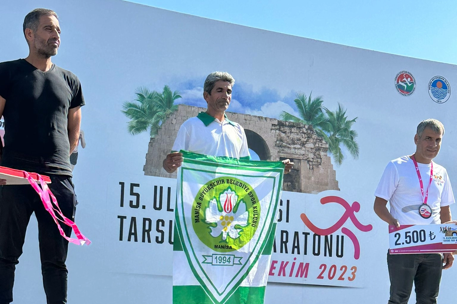 MANİSA (İGFA) -Mersin Büyükşehir Belediyesi tarafından düzenlenen 15. Uluslararası Tarsus Yarı Maratonu, Tarsus'un tarihi ve kültürel dokusu içerisinde gerçekleşti. Türkiye’nin yanı sıra, Tacikistan, Rusya, Belarus, Çek Cumhuriyeti, Kenya, Almanya, Kırgızistan, Moldova, Fas ve Türkmenistan’dan sporcuları katıldığı bu önemli spor organizasyonunda, Manisa Büyükşehir Belediyespor’u Ahmet Bayram temsil etti. Katıldığı her turnuvadan dereceyle dönen başarılı sporcu Bayram, Tarsus’u da boş geçmedi. 45-49 yaş kategorisinde rakiplerini geride bırakan Bayram, zirvede yer almayı başardı.