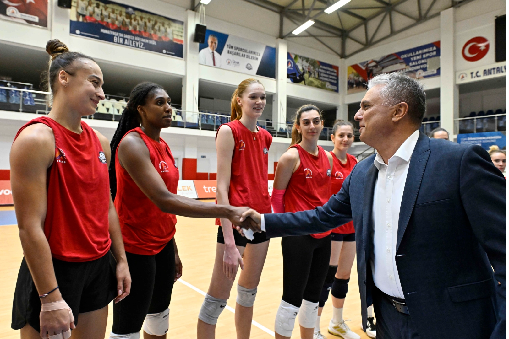 ANTALYA (İGFA) - Antalya’yı dünya kadın voleybolunun en iyi liglerinden biri olan Sultanlar Ligi’nde temsil eden Muratpaşa Belediyesi Sigorta Shop, ligi 11’inci haftasında deplasmanda Karayolları’yla karşılaşacak. Hazırlıkları Süleyman Evcilmen Spor Salonu’nda devam eden takımın antrenmanını Başkan Uysal ziyaret etti.
