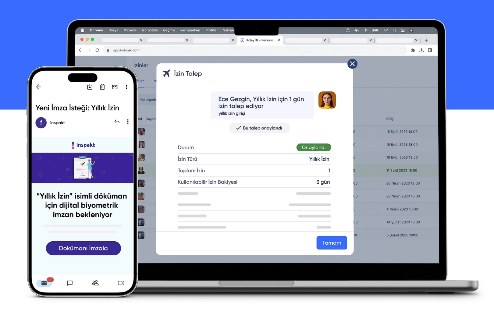 İş ilanı ve yetenek havuzu oluşturmaktan performans yönetimine kadar tüm İK süreçlerinde şirketlerin dijital çözüm ortağı olduklarını söyleyen Kolay İK CEO’su Çağlar Yalı, izin, harcama, fazla mesai ve diğer pek çok süreç ağırlıklı olarak geleneksel yöntemlerle kağıt belge üzerinden ilerlediğini belirterek, "Bazen bir belgeyi imzalatmak saatler, hatta ilgili kişinin yoğun veya izinde olması gibi durumlarda günler alabiliyor. Inspakt iş birliğimiz ile birlikte kullanıcılarımız bu süreçleri dijital ortamda yürüterek dakikalara indirgeyebilecek. Geçmiş dosyalara da dijital ortamdan kolaylıkla ulaşılabileceğinden hem zamandan tasarruf edilecek hem de belgeler güvende olacak. Ayrıca şirketler kağıt ve kargo maliyetlerini düşürecek, ağaçların kesilmesini önleyecek ve karbon ayak izlerini azaltacaklar. Üstelik tüm bunları Inspakt’ın Kolay İK kullanıcılarına özel fiyat avantajı ile sunuyoruz” diye konuştu.