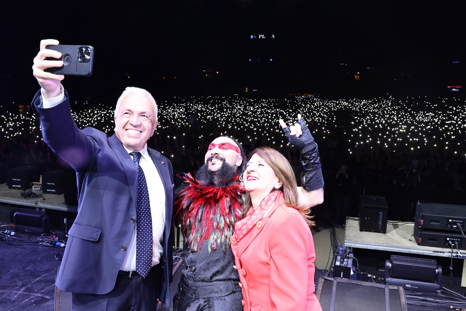Konser sonunda sahneye çıkarak teşekkür eden Nilüfer Belediye Başkanı Şadi Özdemir, günün anısına Hayko Cepkin’e hediye verdi.