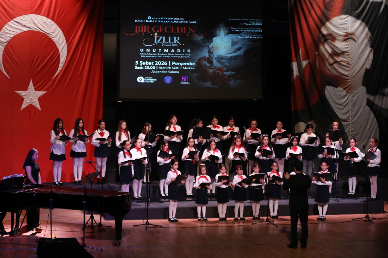 Atatürk Kültür Merkezi’nde (AKM) düzenlenen duygu dolu gecede Antalya Büyükşehir Belediyesi İsmail Baha Sürelsan Konservatuvarı Çoksesli Çocuk Korosu, Simena Çocuk Korosu ve Akdeniz Üniversitesi Çoksesli Çocuk Korosu sahne aldı.