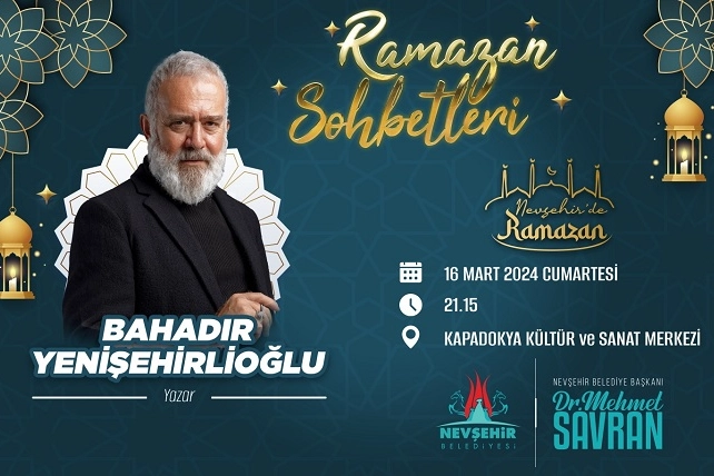 Mehmet UZEL (NEVŞEHİR İGFA) Nevşehir Belediyesi Kültür ve Sosyal İşler Müdürlüğü, ramazan ayı boyunca teravih namazı sonrası Kapadokya Kültür ve Sanat Merkezi’nde kültür, sanat, edebiyat ve müzik dünyasının önemli isimlerini Ramazan Sohbetlerinde vatandaşlarla bir araya getirecek.
