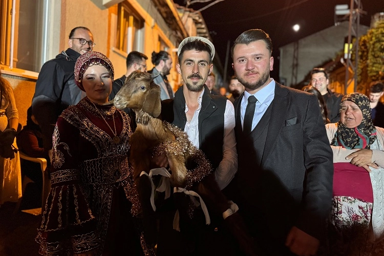 Pazaryeri GÜNDEM (BİLECİK İGFA) Dünya evine giren Gökhan ve Ayşe çiftinin kına gecesi sonrası, gelin Ayşe ve arkadaşları damat evine geleneksel tavuk alma damat aklamak için yola çıktı. Ancak damadın arkadaşları, bu yıl geleneğe farklı bir yorum kattı. Tavuk yerine, gelin ve arkadaşlarının karşısına sevimli bir oğlak çıkardılar.
