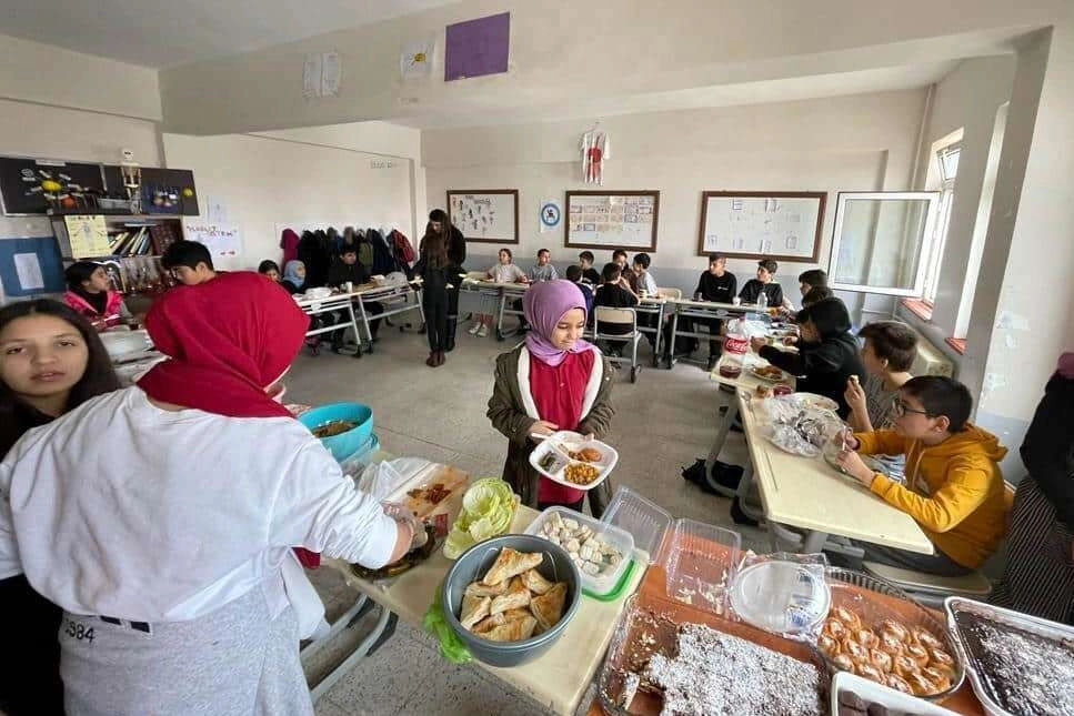 Pazaryeri Gündem / BİLECİK (İGFA) - Pazaryeri ilçesinde Tutum Yatırım ve Türk Malları Haftası etkinlikleri kapsamında Şehit Zafer Koyuncu İmam Hatip Ortaokulu öğrencileri, evlerinden getirdikleri birbirinden güzel yiyecekleri arkadaşları ile paylaşmanın mutluluğunu yaşadı.