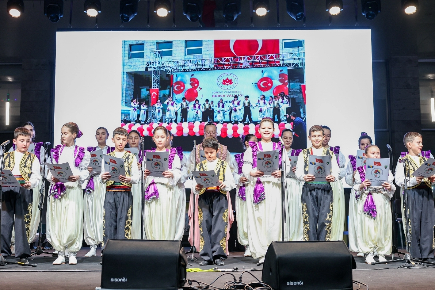 Gecede, Bursa Bosna Sancak Yardımlaşma Dayanışma ve Kültür Derneği’nin gençlerden oluşan folklor ekibi sahne aldı. Balkanların zengin müzik kültürlerinden örnekler sunan ekip, şarkıların ardından sergiledikleri yöresel dans performanslarıyla da alanı dolduran izleyicilerden tam not aldı.