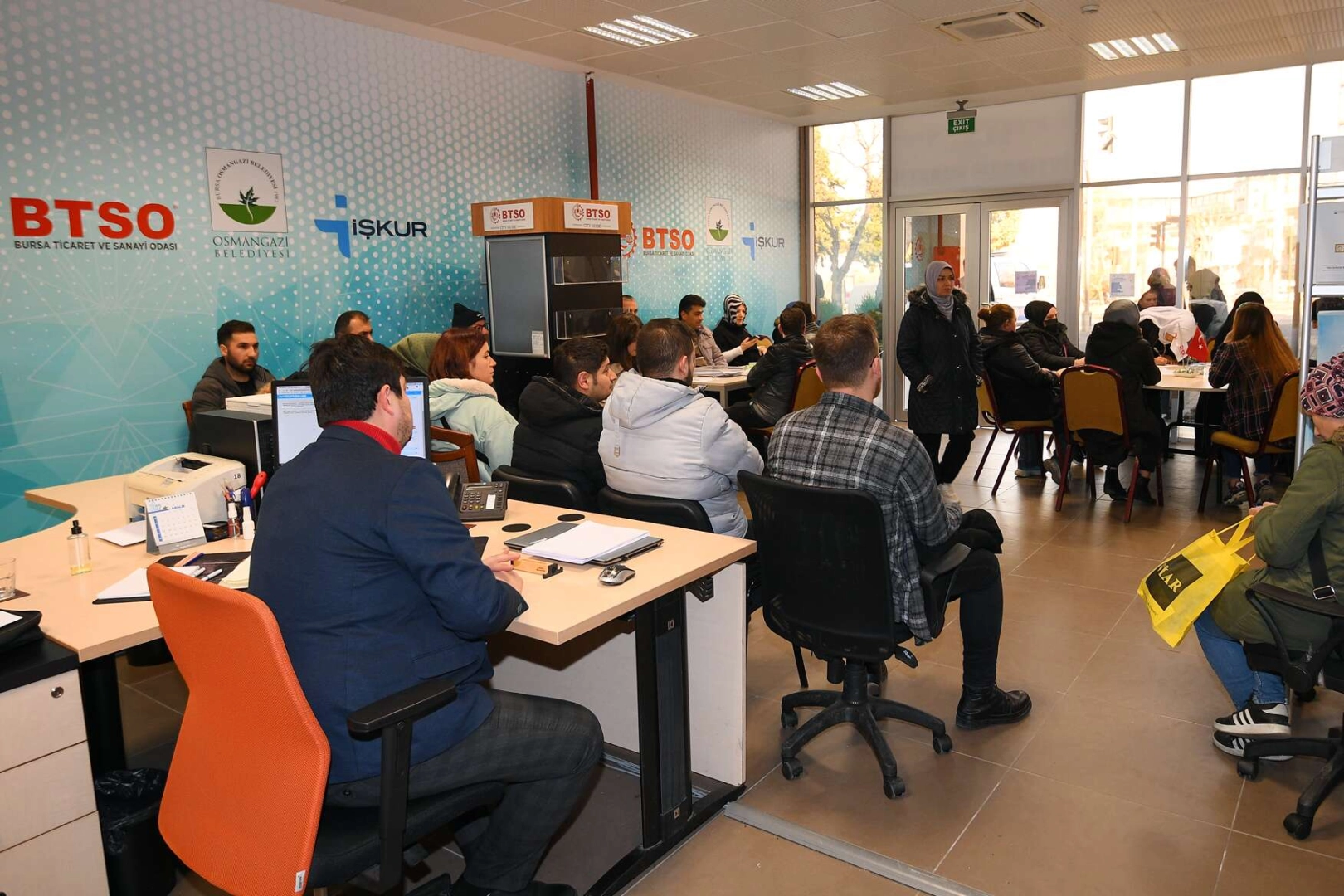 BURSA (İGFA) - Bursa Ticaret ve Sanayi Odası’nın (BTSO) Altıparmak’taki hizmet binasında faaliyet gösteren merkezde, Osmangazi Belediyesi’nin yanı sıra İş-Kur ve BTSO’dan da birer görevli bulunuyor. 4 personelin görev yaptığı istihdam merkezi, hafta içi 08:30-17:30 saatleri arasında hizmet veriyor.