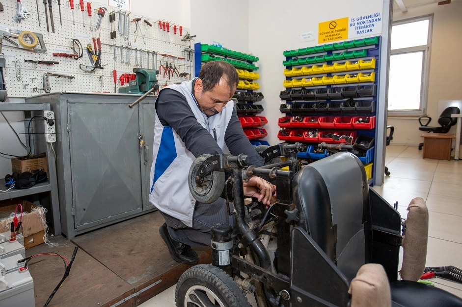 Proje ile araçlarını tamir ve bakım atölyesine getiremeyecek durumdaki engelli vatandaşların adreslerine gidilip, tamir hemen orada yapılıyor ya da arıza büyükse tekerlekli sandalye ekipler tarafından bakım atölyesine getiriliyor.