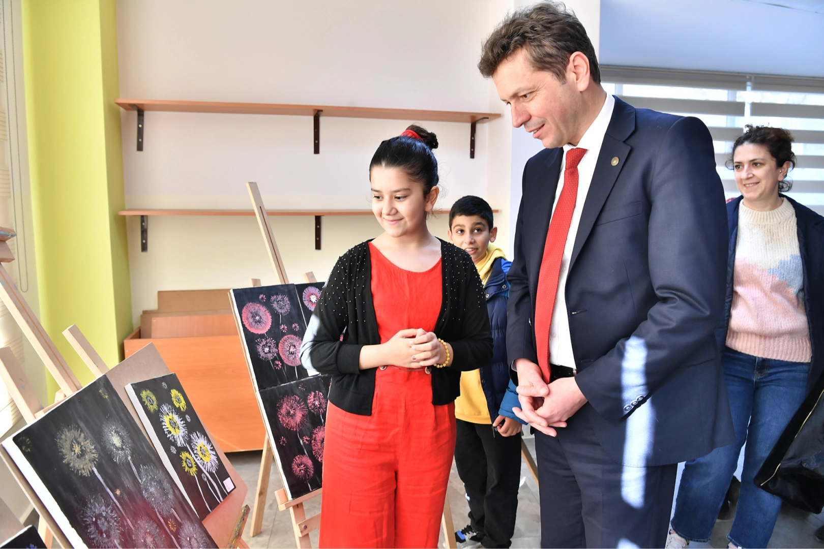 Konuşmaların ardından protokol üyeleri, öğrencilerin el emeği göz nuru yaptıkları kara kalem, sulu boya ve kuru boya resimleri tek tek inceledi. Minik öğrencilerin el emeğiyle hazırlanan toplam 300 eserin yer aldığı sergi, ziyaretçilerden büyük ilgi gördü.
