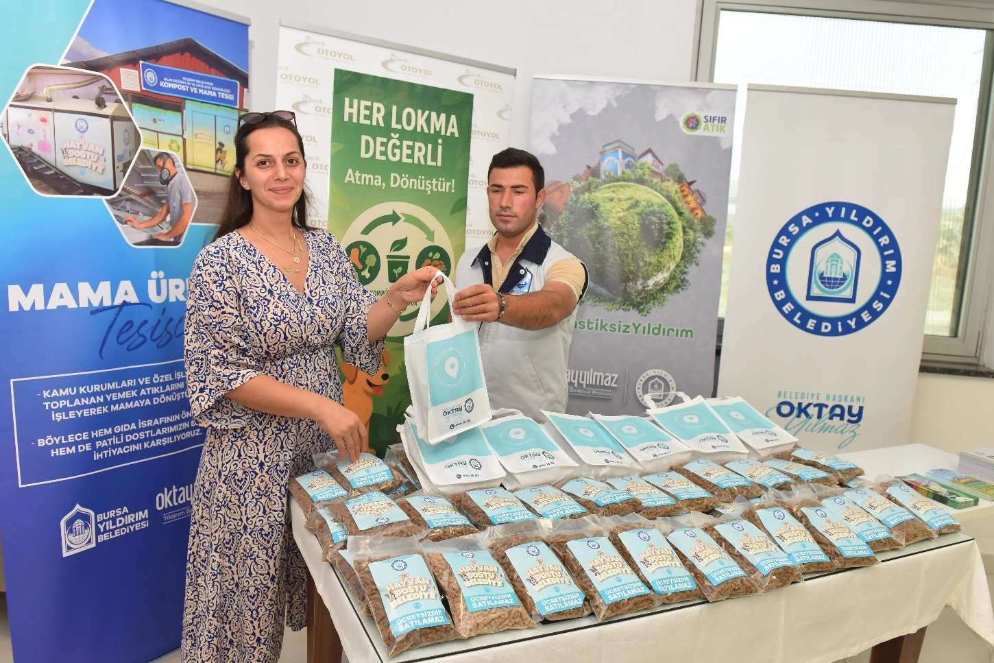 Yıldırım Belediyesi, Sıfır Atık ve İklim Değişikliği Müdürlüğü’nde kurulan Mama Üretim Tesisi’nde haftalık 2 ton yemek atığını kedi ve köpeklerin yiyeceği hazır mamaya dönüştürüyor. Fabrika, kamu hastaneleri, öğrenci yurtları ve lokantalardan toplanan gıda atıkları, Mama Üretim Tesisi’nde işlenerek, mama haline getirilip paketleniyor. Üretilen mamalar, başta Yıldırım Hayvan Barınağı olmak üzere odak noktalarına ve hayvan severlere ulaştırılıyor. Böylece hem yemek atıkları değerlendirilmiş oluyor hem de patili canlar için mama elde ediliyor. Nisan 2023’te başlayan proje ile bugüne kadar 161 ton yemek atığından, 87 ton kedi ve köpek maması üretildi.