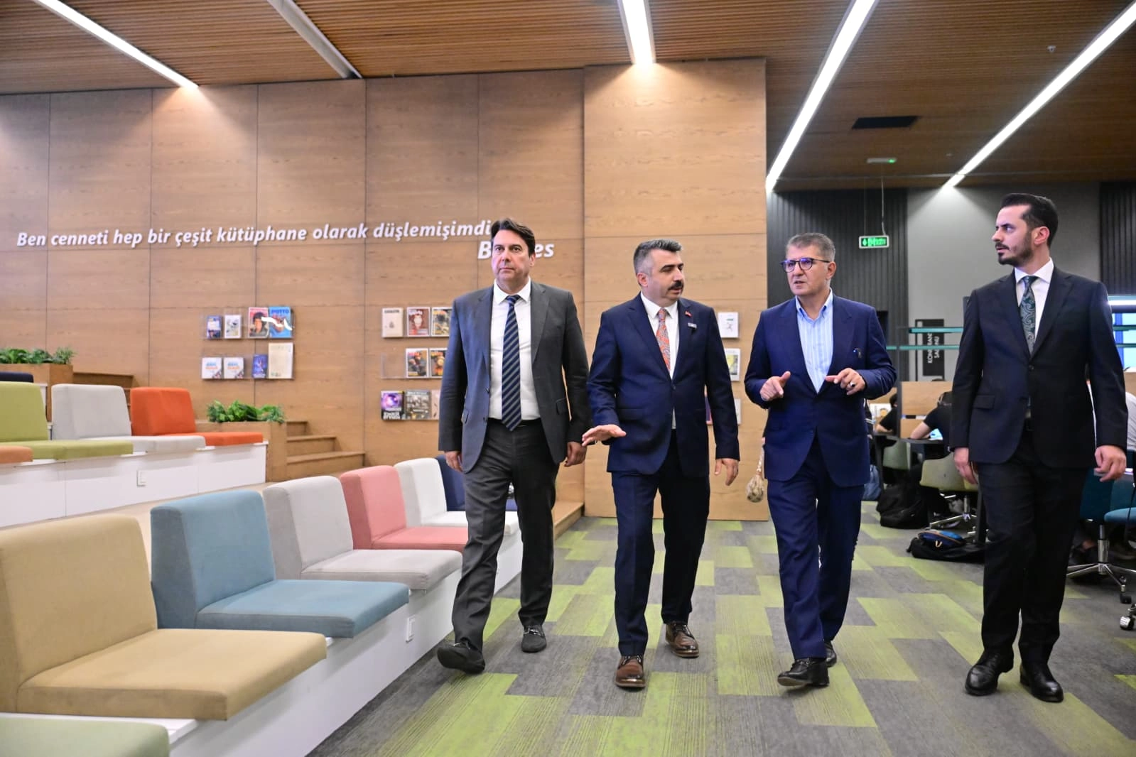 AK Parti MKYK Üyesi Hilmi Türkmen ve beraberindeki heyet ardından Yıldırım Belediyesi’nin Nisan ayında ilçeye kazandırdığı Dr. Sadık Ahmet Gençlik ve Spor Merkezi ile Mümine Şeremet Uyumayan Kütüphanesi’ni ziyaret etti. Başkan Oktay Yılmaz’dan kütüphane hakkında bilgi alan Serdar, geçlerle sohbet edip, incelemelerde bulundu.