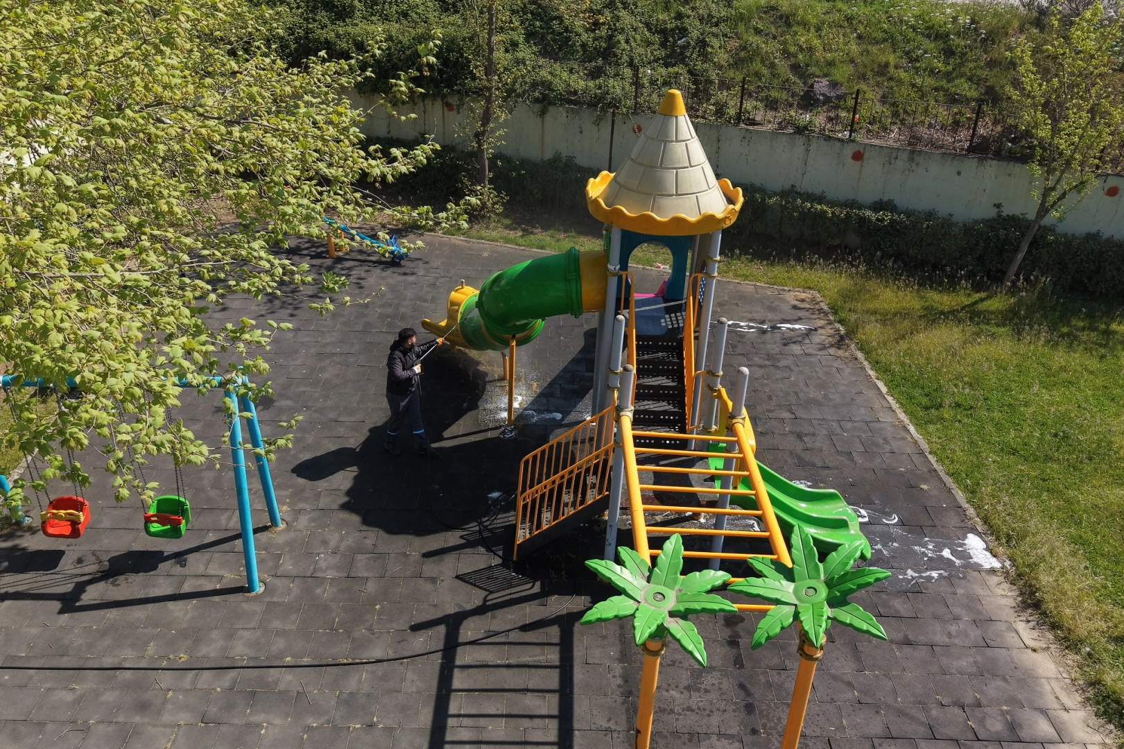 KOCAELİ (İGFA) - Havaların güzelleşmesiyle birlikte, parkları daha yoğun olarak kullanan Çayırovalı çocuklar için harekete geçen Çayırova Belediyesi, ilçedeki parklarda bulunan oyun gruplarında detaylı yıkama çalışması başlattı.