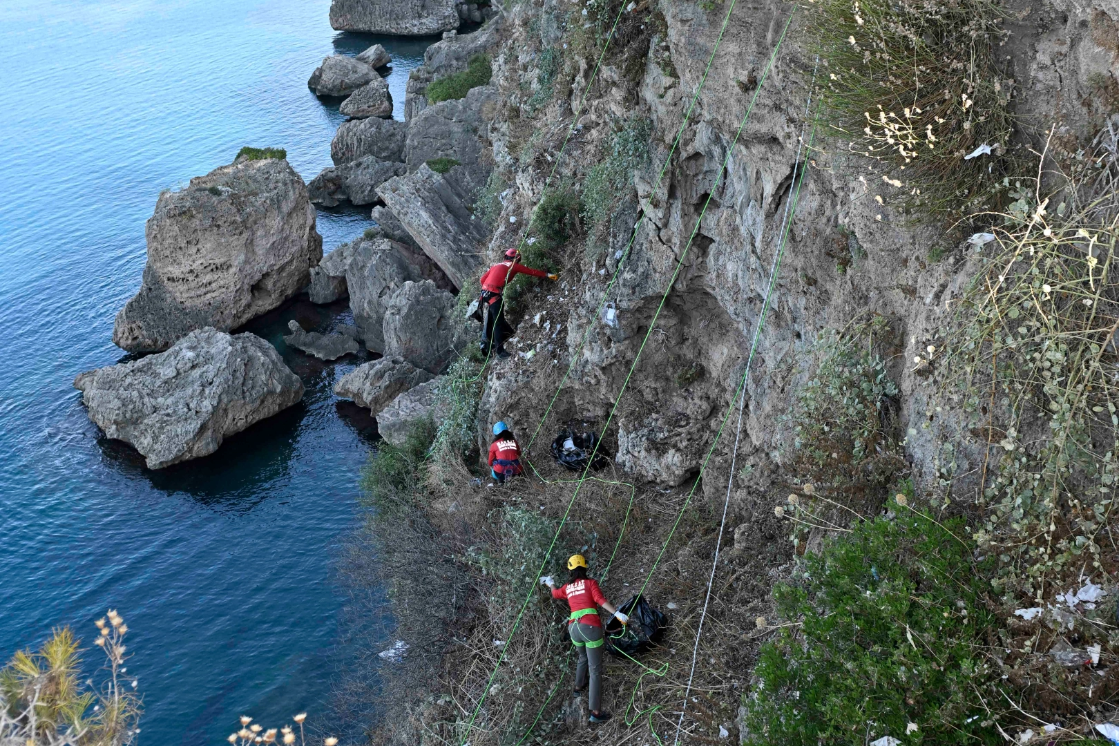 Vakfın Türkiye ekibi ve MAKSAT Arama Kurtarma Derneği iş birliğinde düzenlenen etkinlikte, profesyonel dağcılar denizden yer yer yüksekliği 40 metreyi bulan falezlerde temizlik yaptı.