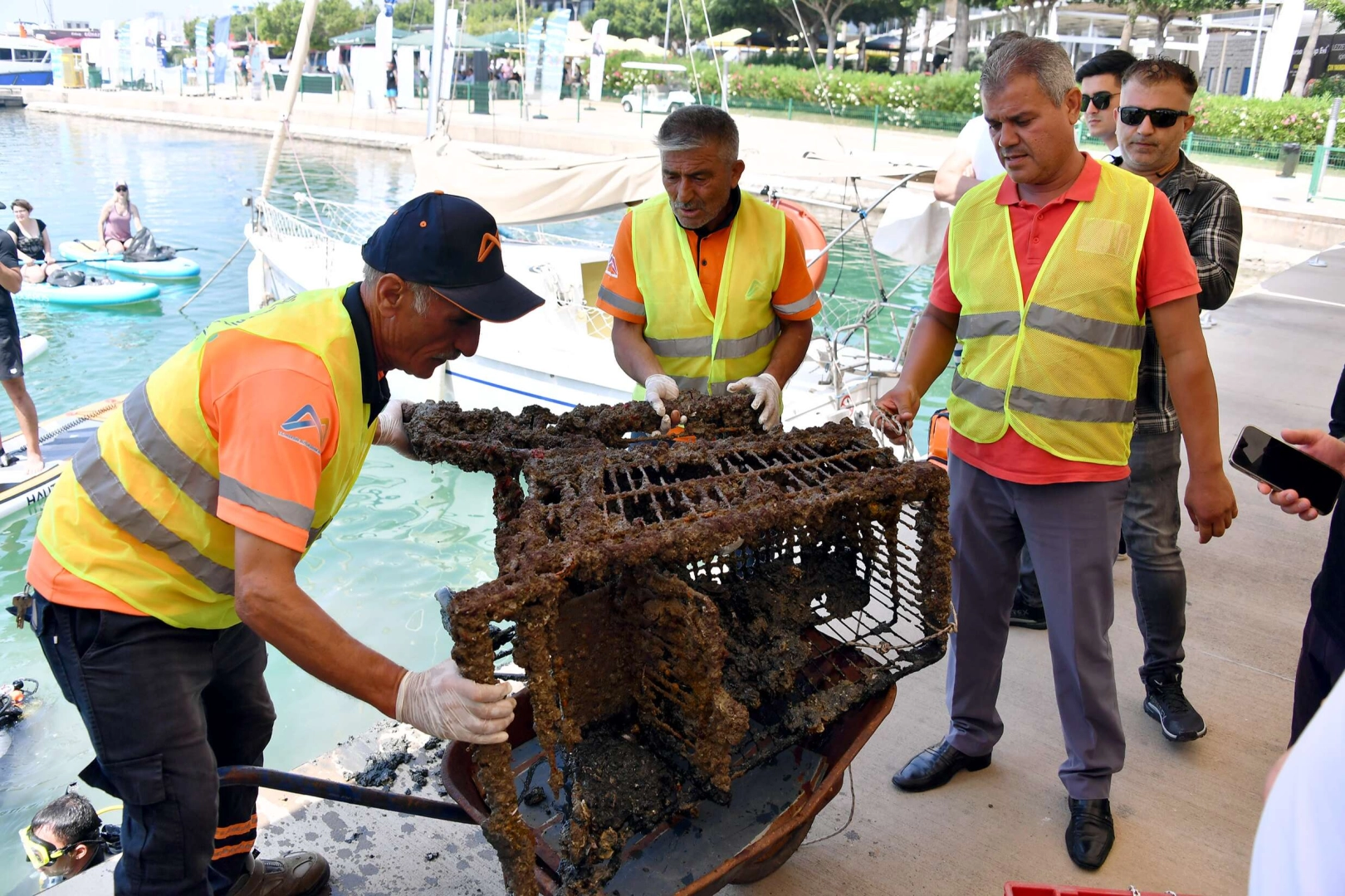 Etkinlik; Mersin Büyükşehir Belediyesi İtfaiye Dairesi Başkanlığı Afet Arama ve Kurtarma Şube Müdürlüğü’ne bağlı Su altı ve Su üstü Arama Kurtarma Amirliği Ekipleri, Sahil Güvenlik, Çevre Şehircilik ve İklim Değişikliği İl Müdürlüğü, Deniz Polisi, Mersin Üniversitesi Su Ürünleri Fakültesi ve Mersin Sup’un işbirliği ile düzenlendi. Etkinlikte; deniz dibinden çıkarılan çanak anten, ayaklı ısıtıcı, alışveriş sepetleri, araba tekerleği, balıkçı ağları ve birçok plastik madde, görenlerde şaşkınlık yarattı. Deniz dibindeki kirliliklere dikkat çekmek ve vatandaşlarda çevre bilincini artırabilmek adına deniz dibinden çıkarılan atıklar, gün boyu Marina’da sergilenecek.
