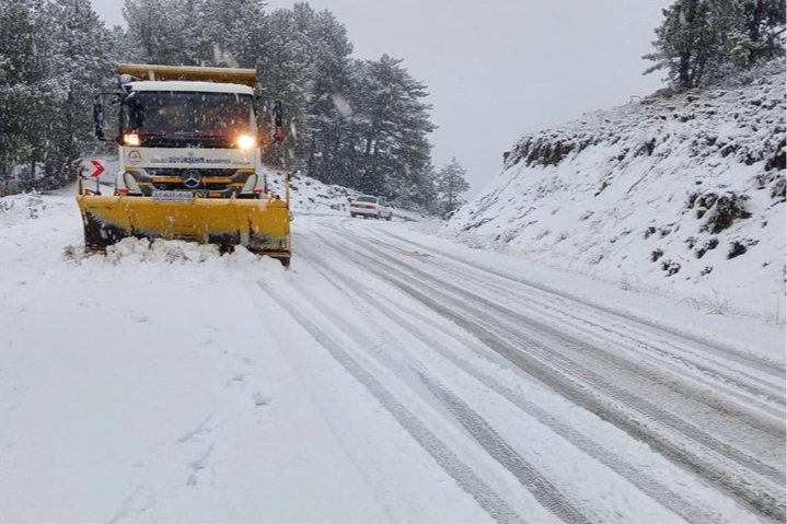 DENİZLİ (İGFA) - Denizli'de beklenen kar yağışına karşı tüm hazırlıklarını tamamlayan Büyükşehir Belediyesi ekipleri, özellikle Çameli ilçesinde etkili olan kar yağışı ile birlikte çalışma başlattı. Bu kapsamda Denizli Büyükşehir Belediyesi Fen İşleri Dairesi Başkanlığı ekipleri Çameli ilçesinin Merkez-Gökçeyaka Mahallesi arasındaki 8 kilometrelik yol, Cumalanı-Güzelyurt Mahallesi arasındaki 6 kilometrelik yol, Cumaalanı-Kınıkyeri Mahallesi arasındaki 10 kilometrelik yol ve Sofular-Arıkaya-Gürsü mahalleleri arasındaki 20 kilometrelik yolda karla mücadele etti. Ulaşımda herhangi bir aksaklık yaşanmaması için Büyükşehir Belediyesi ekipleri ihtiyaç olan bölgelerde yoğun çaba sarf etti.