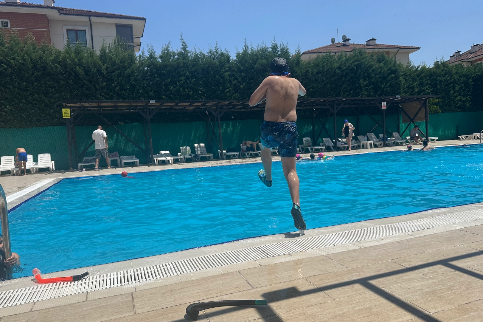 Site yönetimi, havuz alanında güvenliğin üst düzeyde tutulduğunu belirtirken, cankurtaranların görev başında olduğu ve hijyen kurallarına titizlikle uyulduğu vurgulandı.