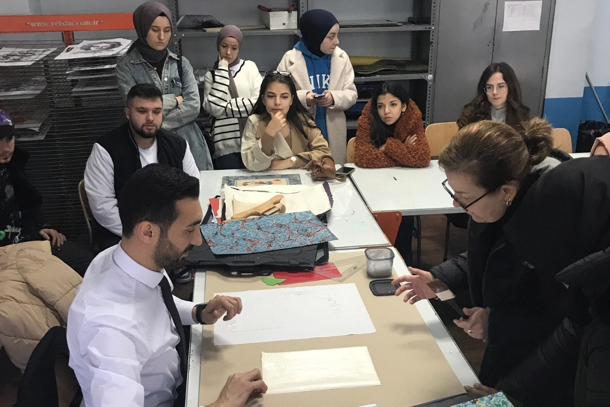Söz konusu Geleneksel Türk Sanatları ile ilgili bilgiler veren Doç. Dr. Parlak, katılımcılarla birlikte geleneksel yöntemlerle murakka yapımı da gerçekleştirdi.