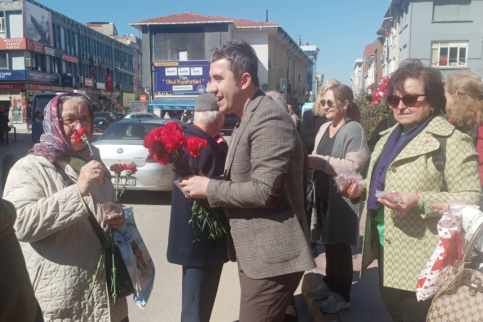 Erdoğan DEMİR / EDİRNE (İGFA) - 8 Mart Dünya Kadınlar Günü dolayısıyla Edirne'nin Keşan ilçesinde AK Parti ve CHP'li üyeler, ilçedeki kadınları unutmadı.