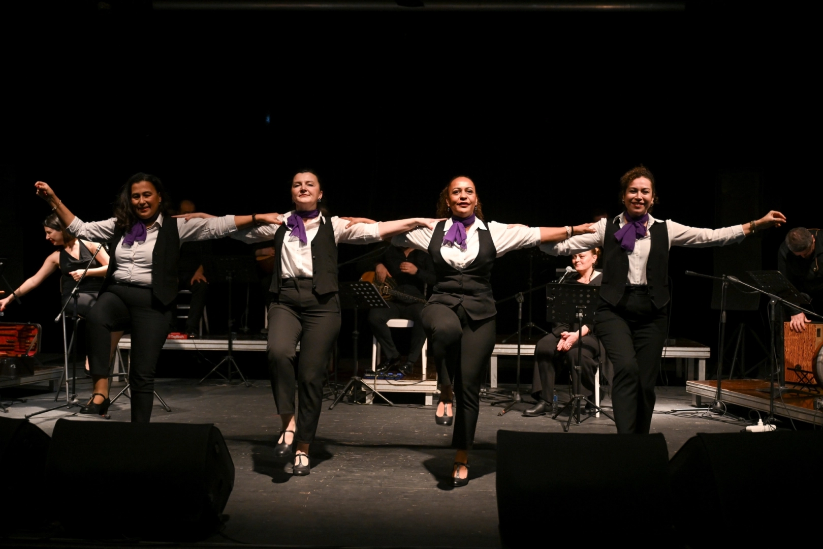 “Aman Katerina - Aman Cevriye Hanım” eserinde salonda duygu dolu anlar yaşanırken, sahneye çıkan dans ekibi Barbayanis gösterisiyle geceye renk kattı. Programın ilerleyen bölümünde seslendirilen Karadeniz eseri, “Ahcik”, “Ada Dansı” ve finalde hep bir ağızdan söylenen “Telli Telli” büyük alkış aldı.