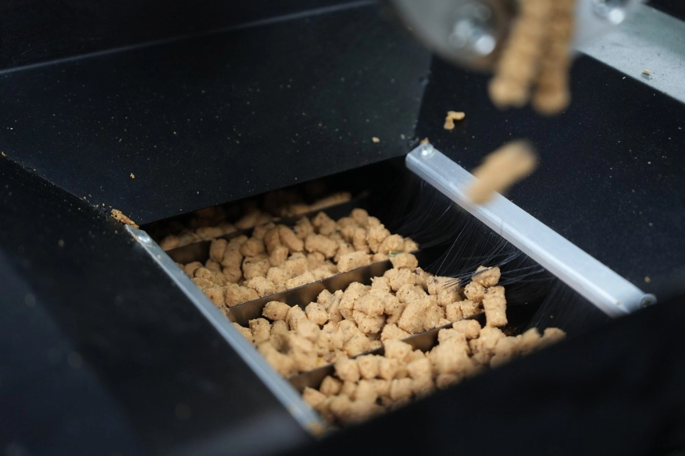 "Tesisimizde ekmek ve sert gıdaları küçültmek için kırıcı, fermentasyon süreci için pişirme kazanı ve mamanın raf ömrünü uzatmak amacıyla katlı kurutma sistemi, aroma kaplama ve nem alma üniteleri bulunuyor. Günlük yaklaşık yaklaşık 500 kilogram mama üretiyoruz."