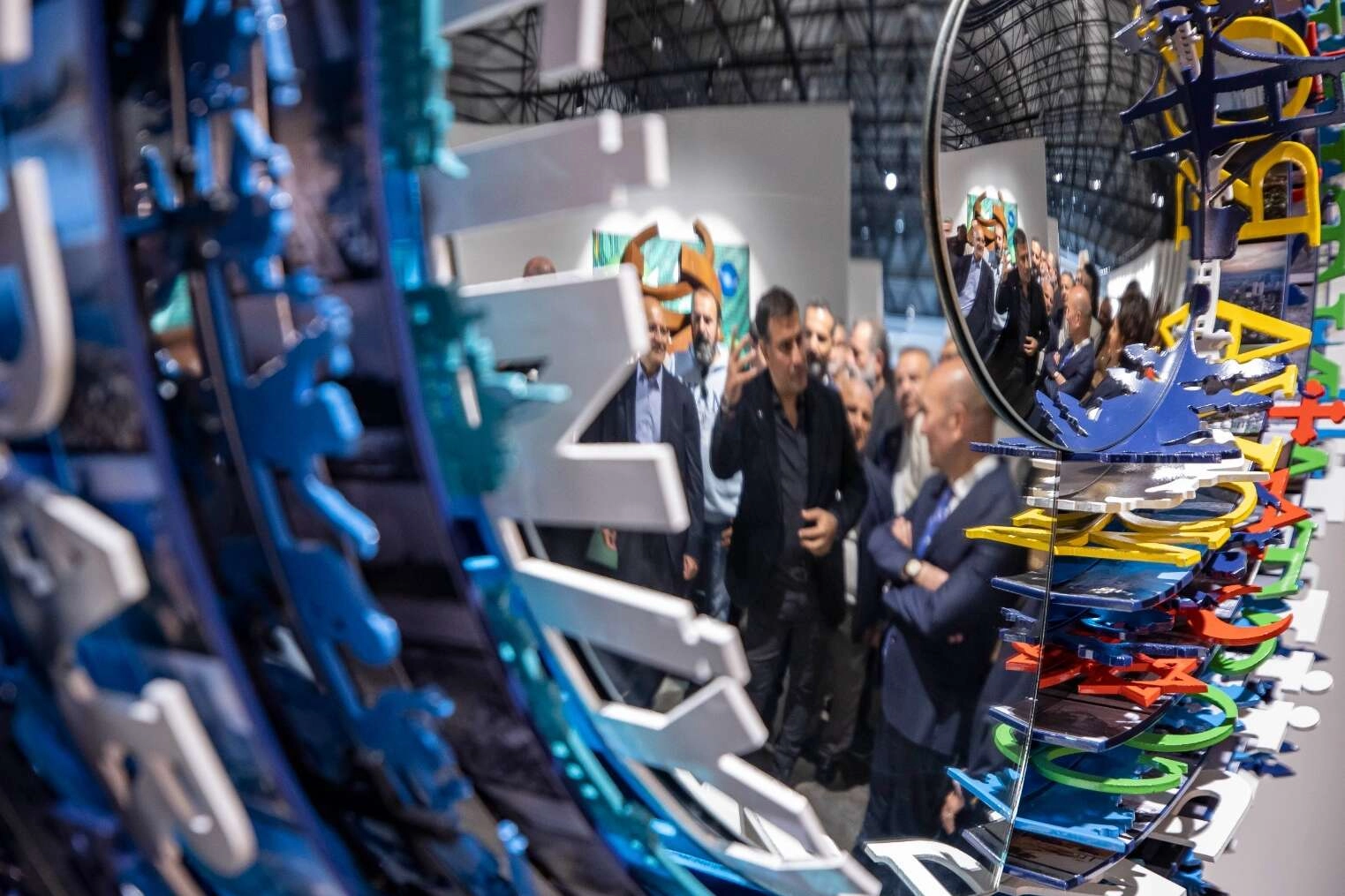 “Mübadele” ana temasıyla yapılan sergide büyük boyutlu enstalasyonlar, videolar ve metal formların taşla tamamladığı heykel çalışmalarının bulunuyor.