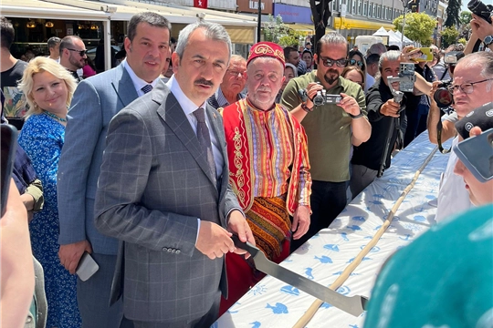Arda Meslek Yüksekokulu Müdürü Prof. Dr. Yeşim Yeşiloğlu, Müdür Yardımcıları Dr. Öğ. Üyesi Hatice Palüzar ve Öğr. Gör. Damla Zeynep Ütebay'ında katılım sağladığı rekor denemesi kapsamında Arif Meriç usta ve öğrencilerimizin yardımları ile oluşturulan Edirne'nin bu meşhur lezzeti Saraçlar Caddesi’nde vatandaşlarla buluşturuldu. Edirne Valisi Yunus Sezer ve il yönetiminin teşrifleri ile yapılan bu etkinlik, badem ezmesi üretildikten sonra şekil verilmesi, dilimlenmesi ve ikramları da öğrencilerimiz tarafından gerçekleştirildi.