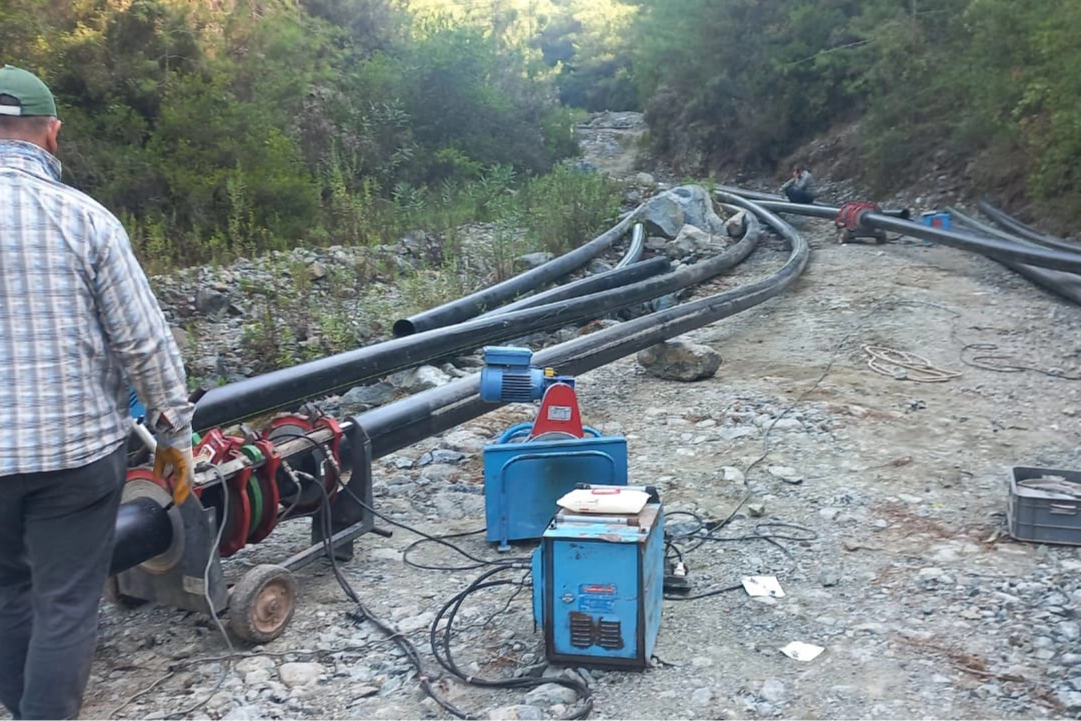 Üretici için hayati öneme sahip olan “kesintisiz su sağlama” gayesiyle Dörtyol Ocaklı Mahallesi Çarşamba Mevkisi’nde bulunan su kaynağı engebeli araziye rağmen 1500 m boru döşenerek kapalı sisteme alındı.