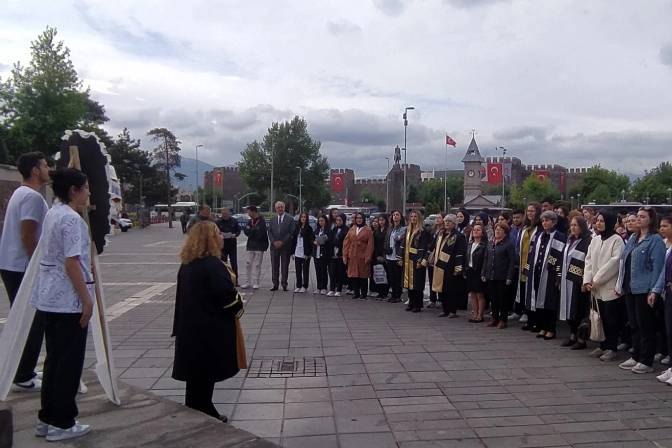 Mehmet UZEL / KAYSERİ (İGFA) - Kayseri Hemşirelik Platformu tarafından Nuh Naci Yazgan Üniversitesi (NNYÜ) Sağlık Bilimleri Fakültesi Hemşirelik Bölümü, Kayseri Devlet Hastanesi, Türk Hemşireler Derneği Kayseri İl Temsilciliği, Kayseri Memorial Hastanesi ve diğer kurumlarda görevli hemşireler ve hemşirelik bölümü öğrencilerinin katılımı ile Atatürk Anıtı önünde bir tören düzenlendi. NNYÜ Sağlık Bilimleri Fakültesi Hemşirelik Bölüm Başkanı Doç. Dr. Zeliha Kaya Erten, Erciyes Üniversitesi Sağlık Bilimleri Fakültesi Hemşirelik Bölüm Başkanı Prof. Dr. Handan ZİNCİR, Kayseri Memorial Hemşirelik Hizmetleri müdürü Kamile AYKUT ve Kayseri Devlet Hastanesi Sağlık Bakım Hizmetleri Müdürü Derya APAYDIN ile beraber Atatürk Anıtı’na çelenk sunuldu. Doç. Dr. Zeliha KAYA ERTEN Saygı Duruşu ve İstiklal Marşı’nın okunmasının ardından bir basın açıklaması yaptı. Hemşirelerin, tüm dünyada ve ülkemizde de kendilerini birçok riskin içine atarak her yerde küresel sağlık sorunlarına çözüm bulmak için bakım ve liderlik sağladığını belirten Erten, “Bu nedenle hemşireler sağlık için temel yaşam gücüdür. Ancak dünya çapındaki sağlık sistemleri bu değerli kaynağa, yani hemşirelere değer vermede yetersiz kalmış, korumada, saygı duymada ve yatırım yapmada başarısız olmuştur” dedi. Uluslararası Hemşireler Konseyi Değişim Bildirgesinde yer alan, hükümetlerin ve iş verenlerin güvenli, uygun maliyetli, erişilebilir ve duyarlı sağlık sistemi oluşturmak, sürdürmek ve hemşireleri görünmez olmaktan paha biçilemez hale getirmek için atmaları gereken politika eylem önerilerini de hatırlatan Erten, bu noktada üniversiteler hastaneler ve dernekler olarak her türlü desteğe hazır olduklarını söyledi.