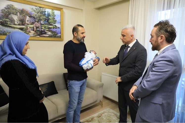 3,5 haftalık olan bebeği kucağına alarak Mete ailesiyle sohbet eden İETT Genel Müdürü İrfan Demet, İETT tarihine geçen bebeğe ve dört kardeşine hediyeler takdim etti.