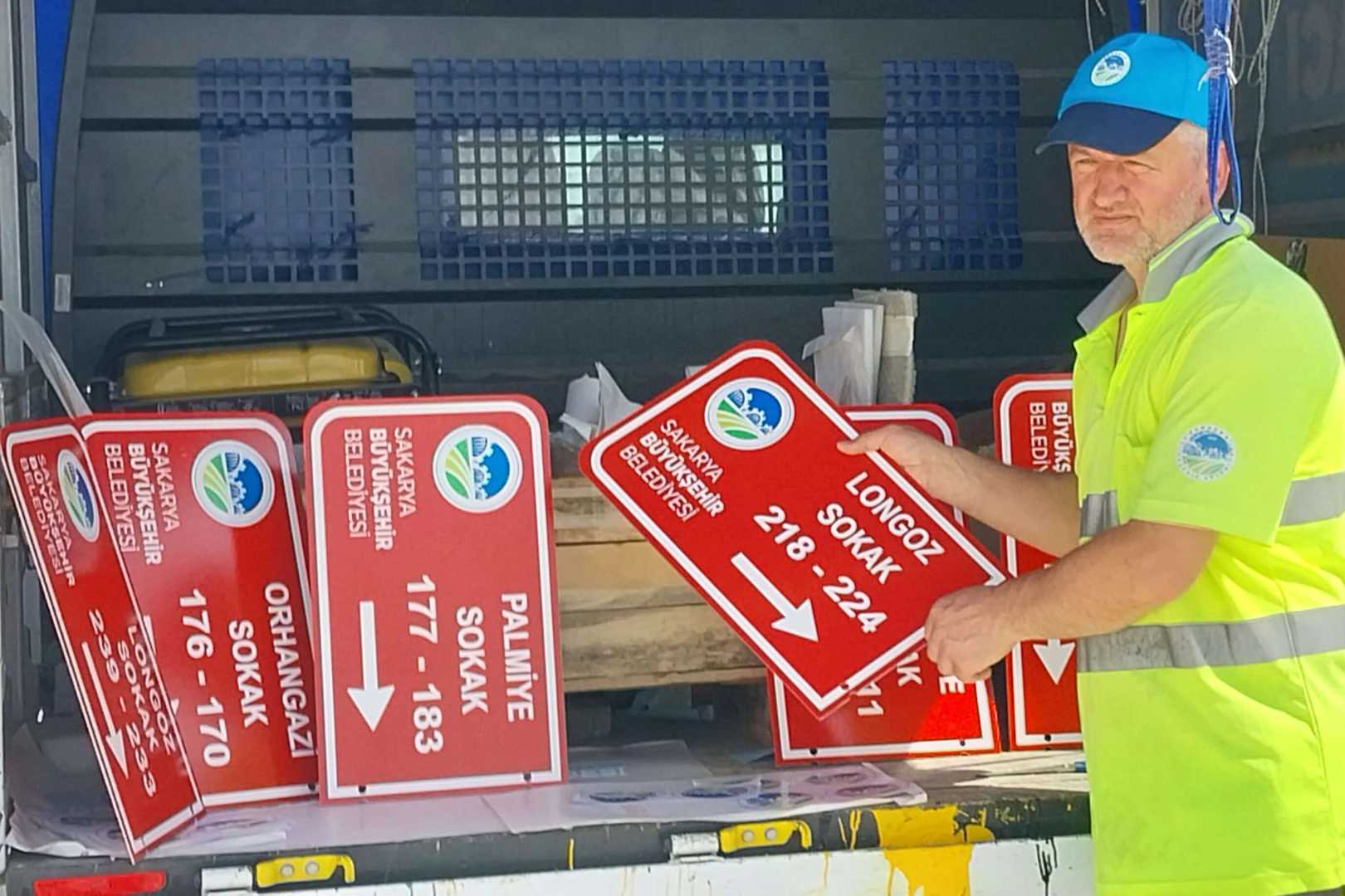 Büyükşehir 'in kurduğu 250 konteynerlik kentin sokak tabelaları ve numarataj işlemleri tamamlanırken, Büyükşehir Belediyesi Yol Bakım ve Altyapı Koordinasyon Başkanlığı bünyesinde faaliyet gösteren Trafik Şube Müdürlüğüne bağlı ekipler tarafından sokak tabelaları yapılıyor ve sokak giriş çıkışlarına yerleştiriliyor.