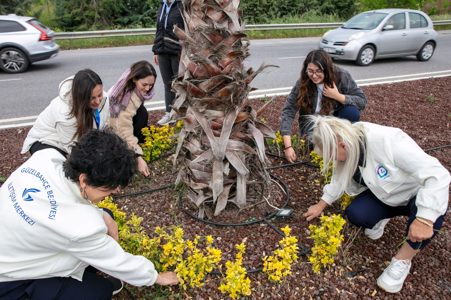 Başta Seferihisar orta refüjü olmak üzere Güzelbahçe’nin birçok kavşak ve meydanına dikilerek Güzelbahçe’nin simgesi haline gelen oya ağaçlarının bakımı yaptı, uzayan otları yoldu.
