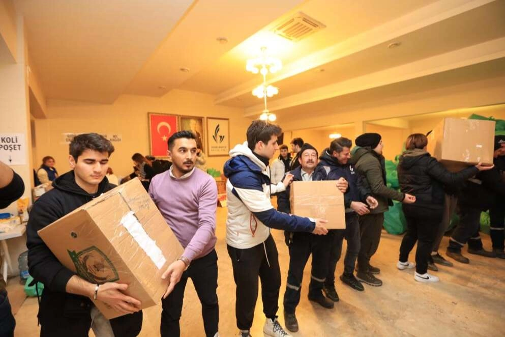 İZMİR (İGFA) - Kahramanmaraş'ta meydana gelen 10 il ve onlarca ilçede yıkıma ve can kayıplarına neden olan depremlerin ardından Güzelbahçe’de yardımlar çığ gibi büyümeye devam ediyor. Belediye ve kaymakamlıktan yapılan açıklamanın ardından akın akın gelen yardımlar belediye, kaymakamlık ekipleri ve gönüllü vatandaşlar tarafından ayrıştırılıp kolileyip araçlara bindiriliyor.