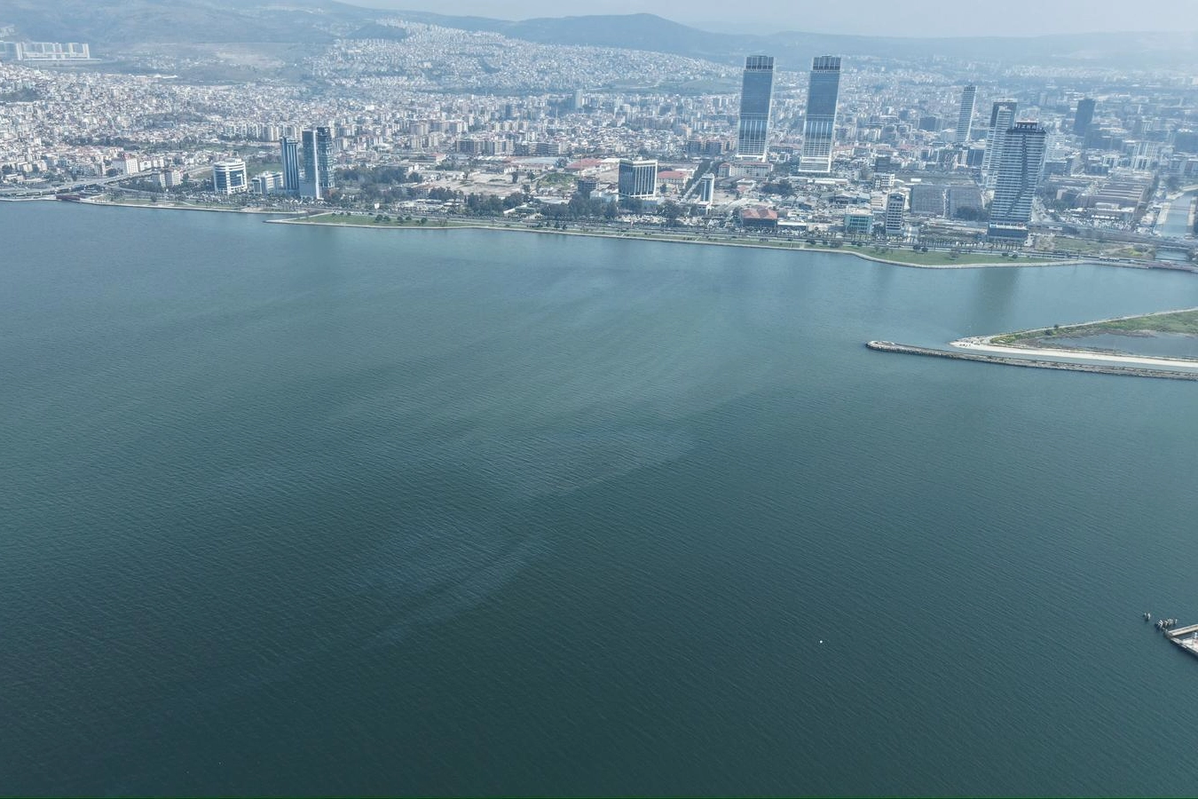 İzmir Körfezi’nde havadan görüntüleme yöntemiyle rutin olarak tarama yapan İzmir Büyükşehir Belediyesi tarafından son aylarda sürekli tekrarlanan dış kaynaklı kirlilik görüntülerine yeniden rastlandı.
