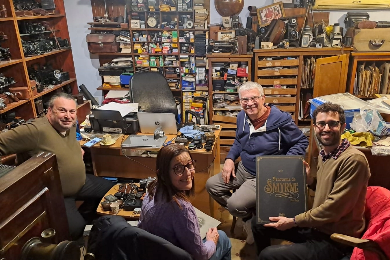 İZMİR (İGFA) - 1930-1940'lı yıllarda İzmir'in ilk fotoğrafçıları olarak da bilinen AlexsandroGagin'in torunu Alexsander ve torununun oğlu Sebastian ve Hamza Rüstem'in torunu Mert Rüstem İzmir'de bir araya geldi.