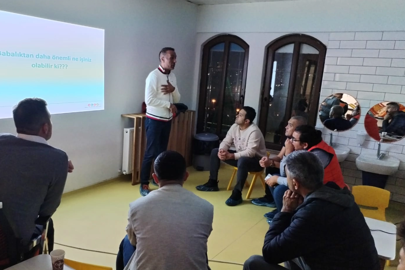 KOCAELİ (İGFA) - Baba Destek Programının Tanıtım toplantısında AÇEV Saha Danışmanı Psikolojik Danışman Muharrem Köse Tüysüzler Çınar Çocuk Evi’nde eğitim gören çocukların babalarını program hakkında bilgilendirdi. Tanıtım toplantısında, 13 hafta boyunca devam edecek eğitim süreci ile ilgili bilgiler verildi. Baba Destek Programı (BADEP), babaya destek vererek çocuğun çok yönlü gelişimine katkıda bulunmayı hedefleyen bilimsel bir yetişkin eğitim programı.