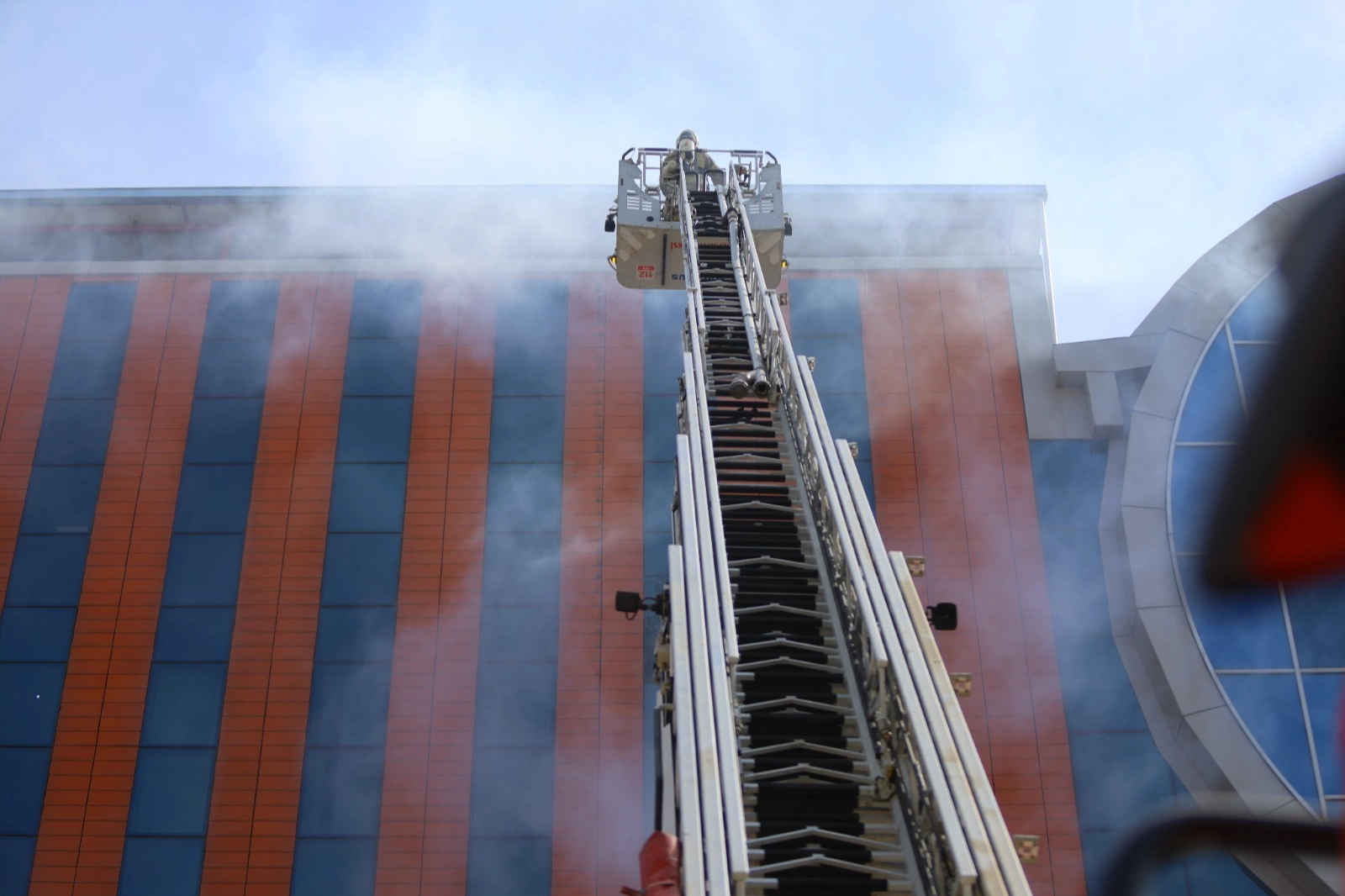 İZMİR (İGFA) - Karabağlar Belediyesi ana hizmet binası ve açık otopark alanında yapılan tatbikat, gerçeğini aratmadı. Senaryo gereği binada çıkan yangına hızla müdahale edilerek, çatı katında mahsur kalan personel güvenli şekilde tahliye edildi. Kurtarma çalışmaları başarıyla uygulanırken, tatbikatta Güvenlik ve Zabıta birimleri de aktif rol aldı.