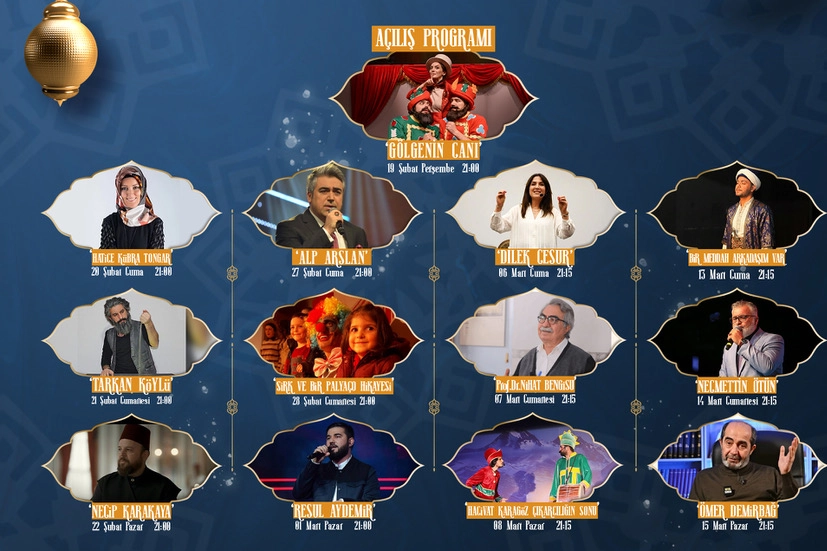 Ramazan ayı boyunca her cuma, cumartesi ve pazar günü düzenlenecek programlar kapsamında 20 Şubat’ta Hatice Kübra Tongar, 21 Şubat’ta Tarkan Köylü, 22 Şubat’ta Necip Karakaya, 27 Şubat’ta Alper Arslan, 28 Şubat’ta çocuklara yönelik “Sirk ve Bir Palyaço Hikayesi”, 1 Mart’ta Resul Aydemir, 6 Mart’ta Dilek Cesur, 7 Mart’ta Prof. Dr. Nihat Bengisu, 8 Mart’ta Hacivat Karagöz “Cırcırböceğin Sonu”, 13 Mart’ta “Bir Meddah Arkadaşım Var”, 14 Mart’ta Necmettin Nursaçan ve 15 Mart’ta Ömer Demirbağ Talaslılarla buluşacak. Söyleşilerden tasavvuf musikisine, geleneksel sahne sanatlarından çocuk programlarına kadar geniş bir içerikle hazırlanan etkinlikler, Ramazan akşamlarına anlam katacak.