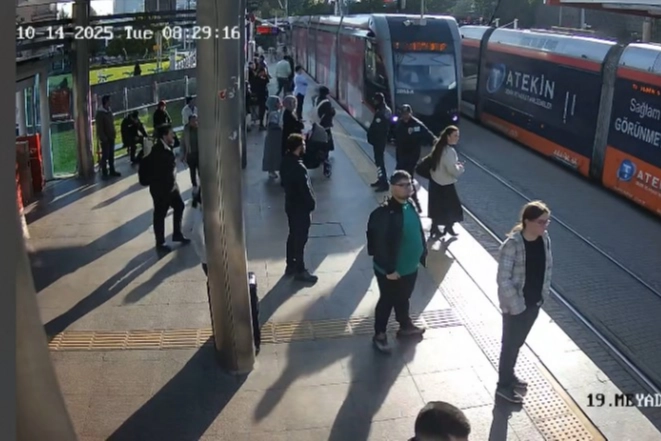 Cumhuriyet Meydanı Raylı Sistem İstasyonu’nda karşıya geçmek isteyen genç bir yolcu, kulaklık taktığı için yaklaşan tramvayı fark etmedi. O esnada görev başında olan güvenlik personelinin hızlı refleksi sayesinde genç yolcu raylara girmeden son anda durdurularak olası bir kazadan kurtarıldı.