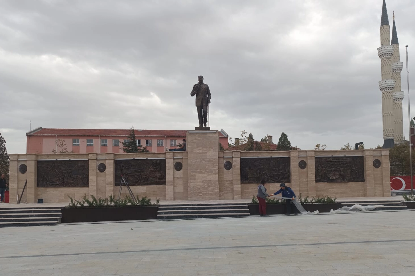 Burada bulunan mozole ve Atatürk Anıtı ve birbirinden güzel rölyeflerde tamamlandı. Meydan yolu da ayrıca asfaltlanırken, Cumhuriyet Bayramı töreni için protokolun oturacağı tribünde monte edildi.
