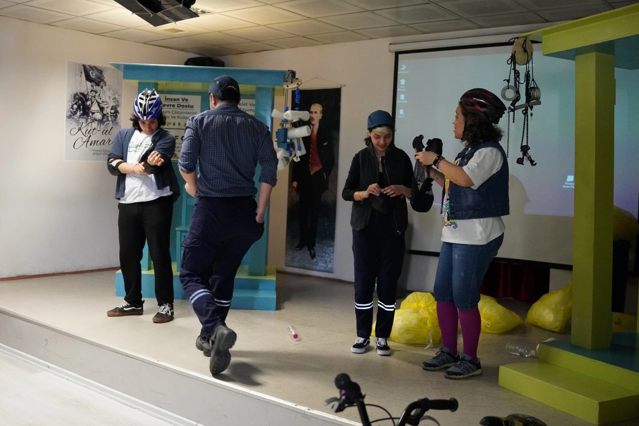 Avrupa Birliği destekli Sürdürülebilir Kentsel Ulaşım Planı (SKUp) kapsamında hazırlanan “Sürdür Abi” tiyatro oyunu çocuklara ulaşımın çevreye etkilerini öğretiyor. Çocuklar, eğlenceli sahneler ve interaktif anlatımlar sayesinde bisiklet yolları, güvenli yürüyüş alanları ve toplu taşımanın avantajlarını gülerek öğreniyor.