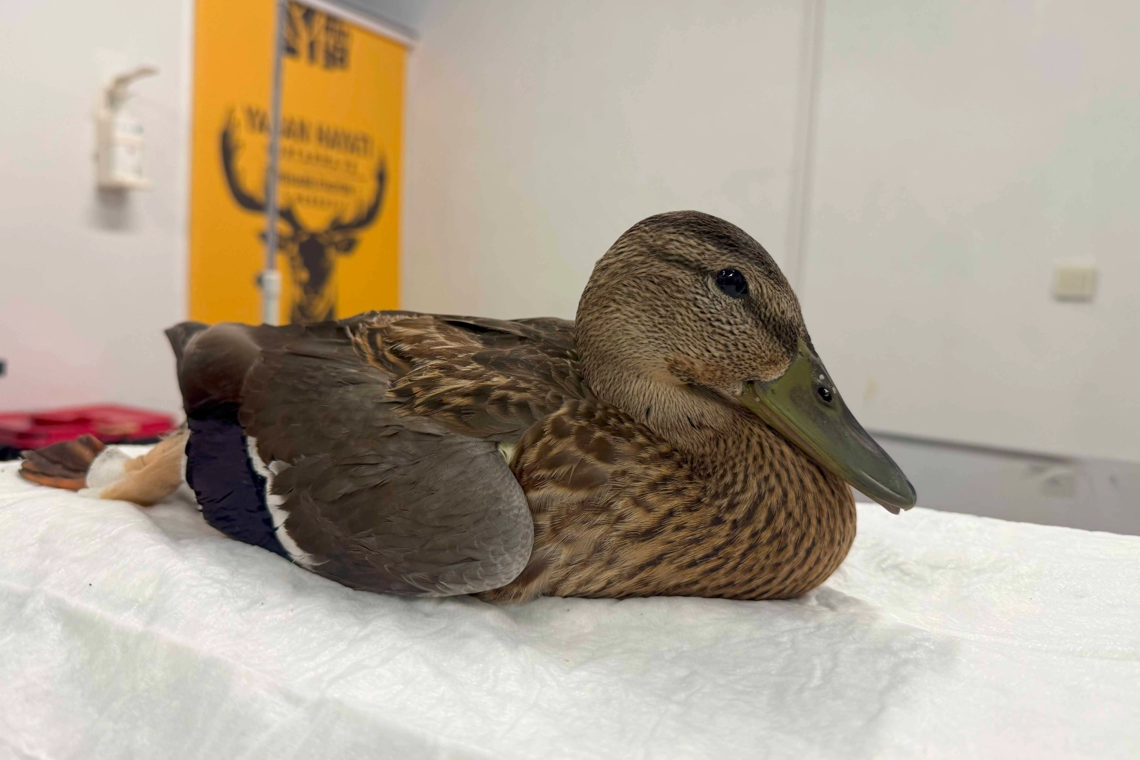Yorgun ve bitkin gözüken ördek, hemen Ormanya Yaban Hayatı Kurtarma ve Rehabilitasyon Merkezi’ne götürülerek tedavi altına alındı.