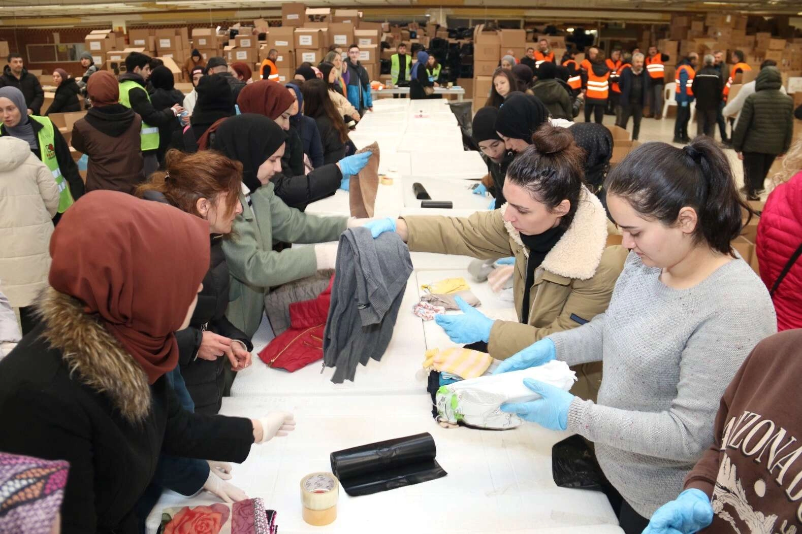 Deprem bölgesine gidecek olan ve Kocaeli genelinden gelen battaniye, ısıtıcı, soba, gıda, giyim ve hijyen maddeleri, eski Carrefour Alışveriş Merkezi’nde kurulan Ayni Yardım Kabul Merkezi’nde toplanıyor. Ayni Yardım Kabul Merkezine gelen yardım malzemeleri, ürün çeşidine göre ayrıştırılıp paketlenerek tırlara yüklenip, deprem bölgesine gönderiliyor. Ürünlerin ayrıştırılması, paketlenmesi ve tırlara yüklenmesinde, Büyükşehir personelleri, gönüllüler ve diğer vatandaşlar canla başla sabahlara kadar çalışıyor.