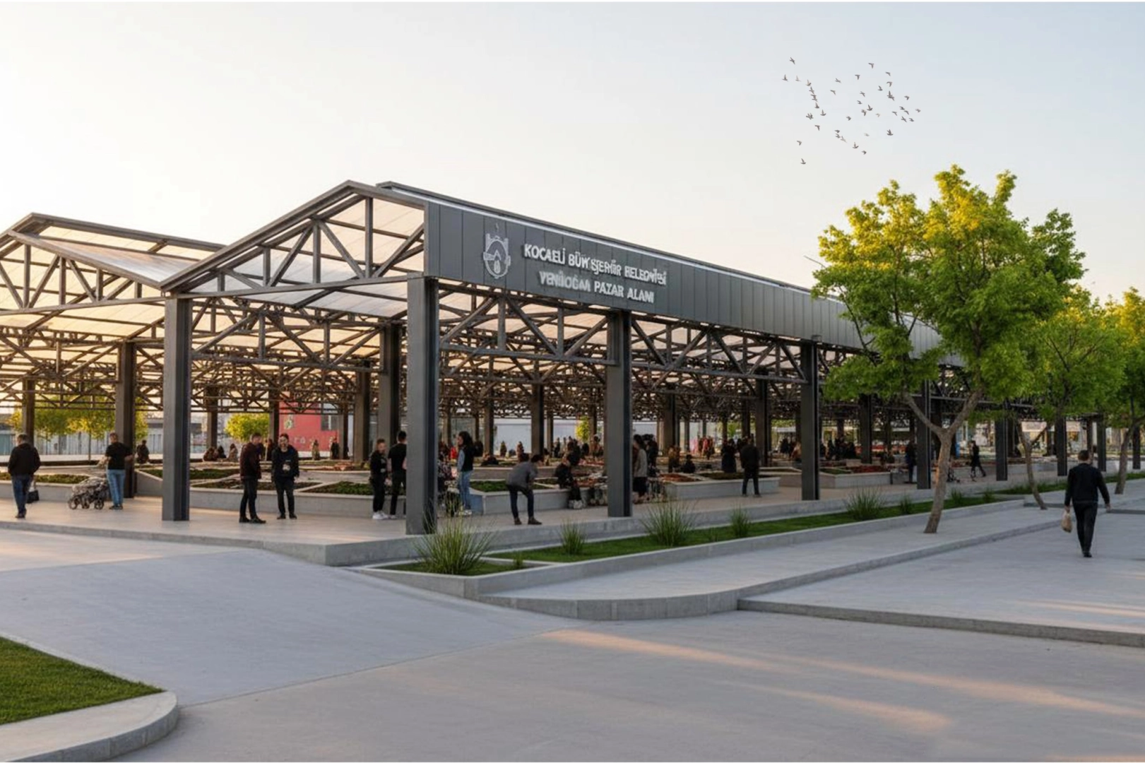 Toplam 5.700 metrekarelik saçak altı kapalı alana sahip olacak yapı, yüksek tavanlı ve doğal havalandırmaya imkân veren modern mimarisiyle dikkat çekiyor. Çelik konstrüksiyon taşıyıcı sistemle inşa edilecek pazar alanı, ferah ve güvenli bir alışveriş ortamı sunacak şekilde planlandı.
