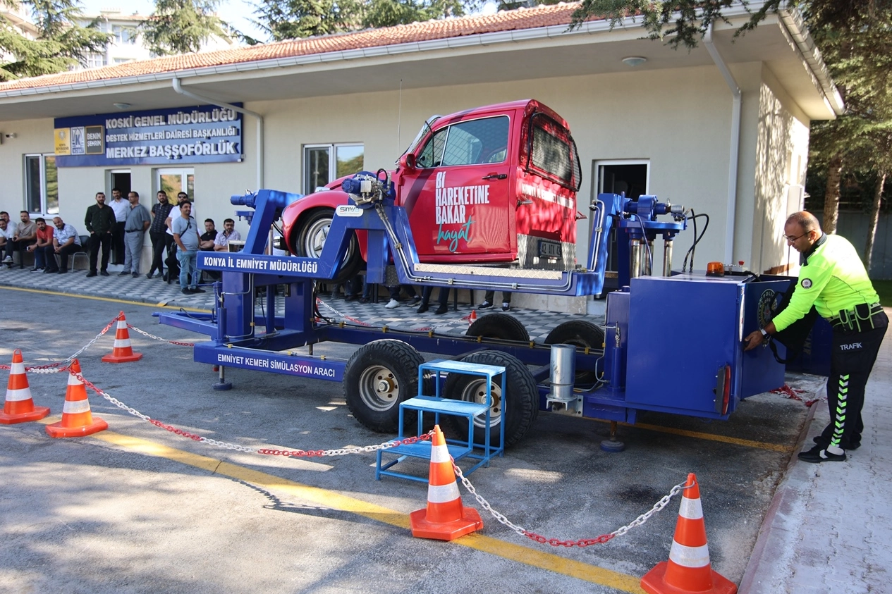 Bu kapsamda Konya İl Emniyet Müdürlüğü Trafik Şube Müdürlüğü ve KOSKİ Genel Müdürlüğü Eğitim Şube Müdürlüğü işbirliğinde KOSKİ’de araç kullanan çalışanlar ve şoförlere Trafik Farkındalık Eğitimi ve Simülasyon Programı düzenledi.