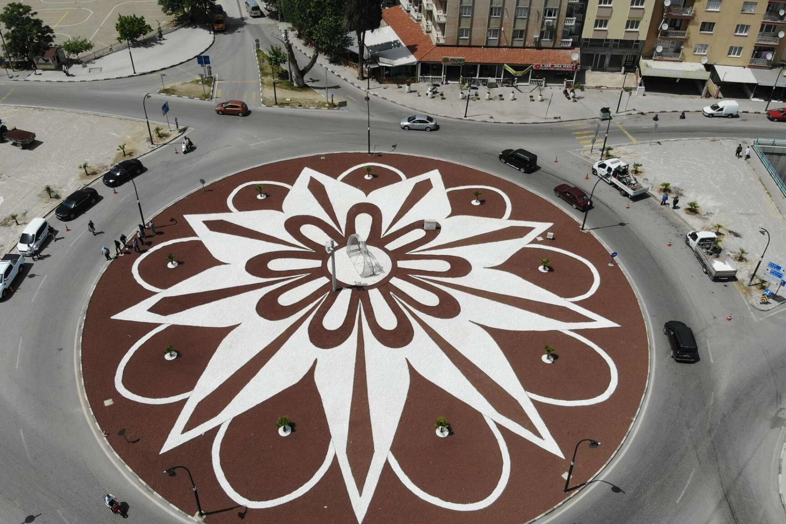 Bu bağlamda Turgutlu ilçesi Alparslan Türkeş Kavşağı da gerçekleştirilen peyzaj çalışmasıyla yepyeni bir görünüm kazandı. Türk Bayrağı'nın simgesi ay-yıldız motiflerinin de yer aldığı peyzaj uygulaması vatandaşların da büyük beğenisini topladı. Manisa Büyükşehir Belediyesi Genel Sekreter Yardımcısı Ali Öztozlu, Kent Estetiği Dairesi Başkanı Hakan Göktaş ile birlikte peyzaj uygulamalarını yerinde inceledi.